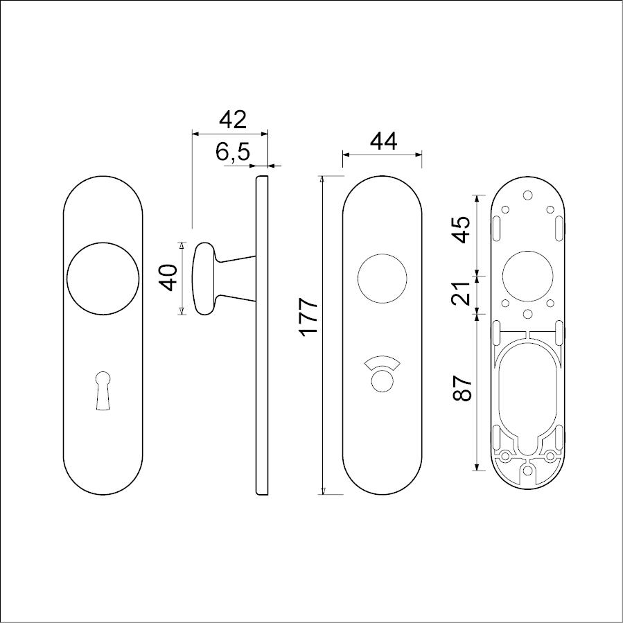Deze serie binnendeurschilden kenmerkt zich door de blinde bevestiging van een hoogwaardig geanodiseerde aluminium afdekplaat op een nylon onderplaat met geintegreerde nylon ring.