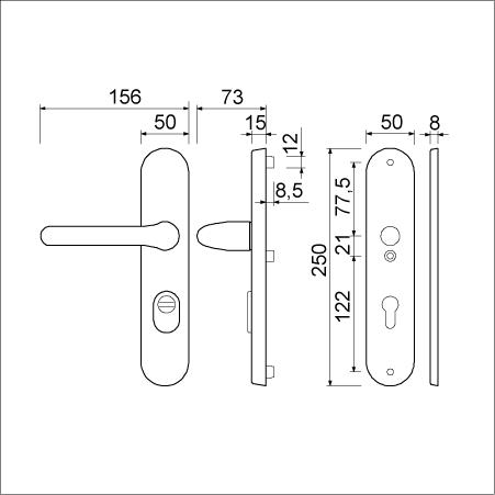 Buitenschild 15 mm met deurkruk 386 ROTA verend vastdraaibaar,