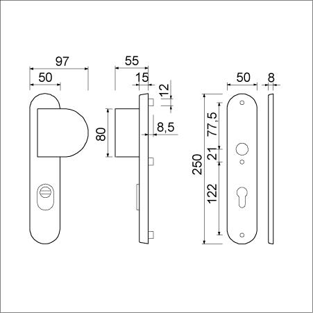 binnenschild 8 mm met deurkruk 386 ROTA verend vastdraaibaar,
