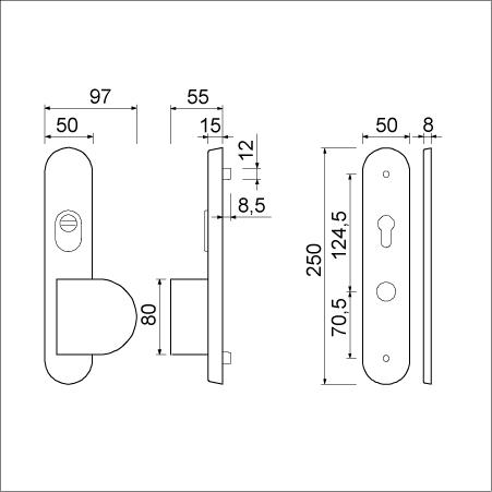 binnenschild 8 mm met deurkruk 378 ROTA verend vastdraaibaar,