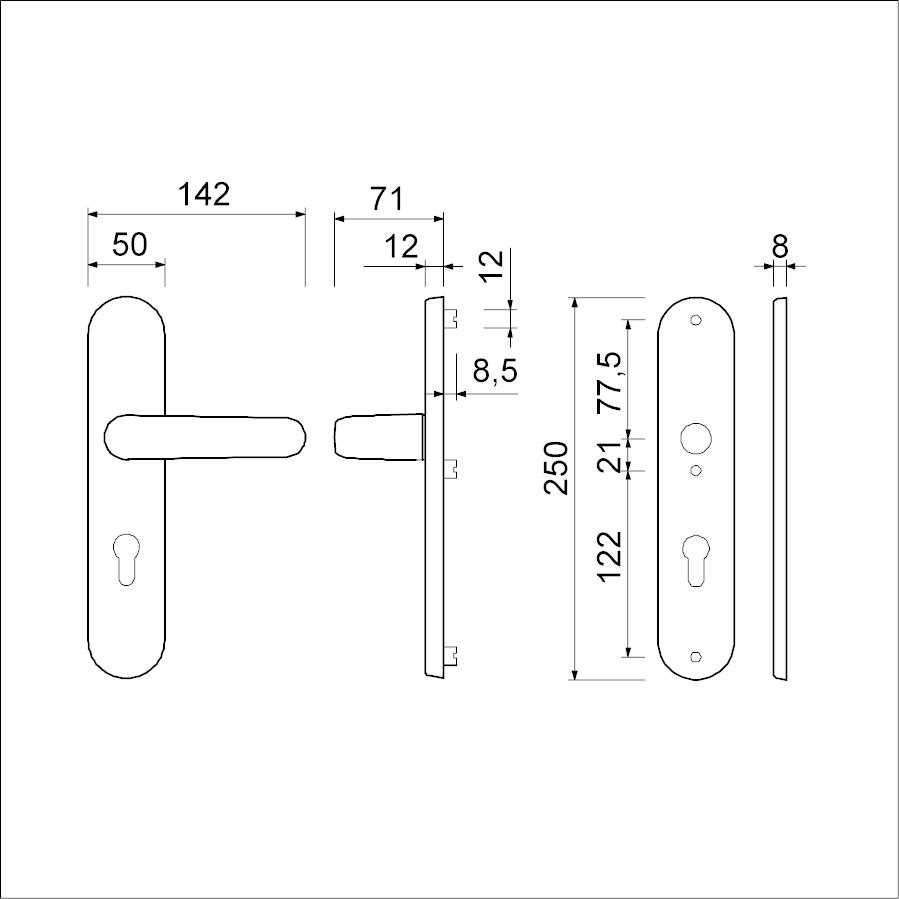 Buitenschild 12 mm met deurkruk 378 ROTA verend vastdraaibaar,
