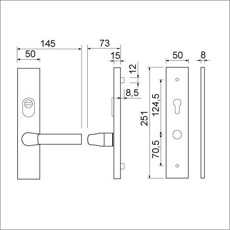 Buitenschild 15 mm met deurkruk 379 ROTA verend vastdraaibaar,