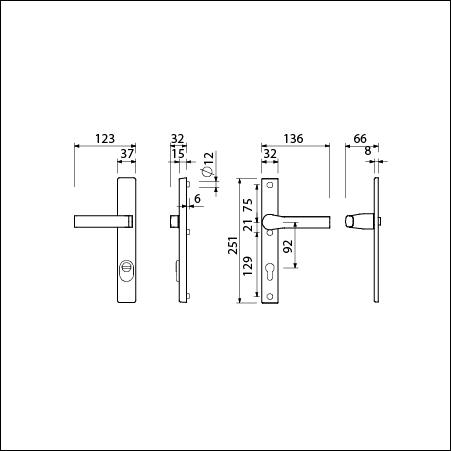 Buitenschild 15 mm dik en 37 mm breed met deurkruk 353 vastdraaibaar,