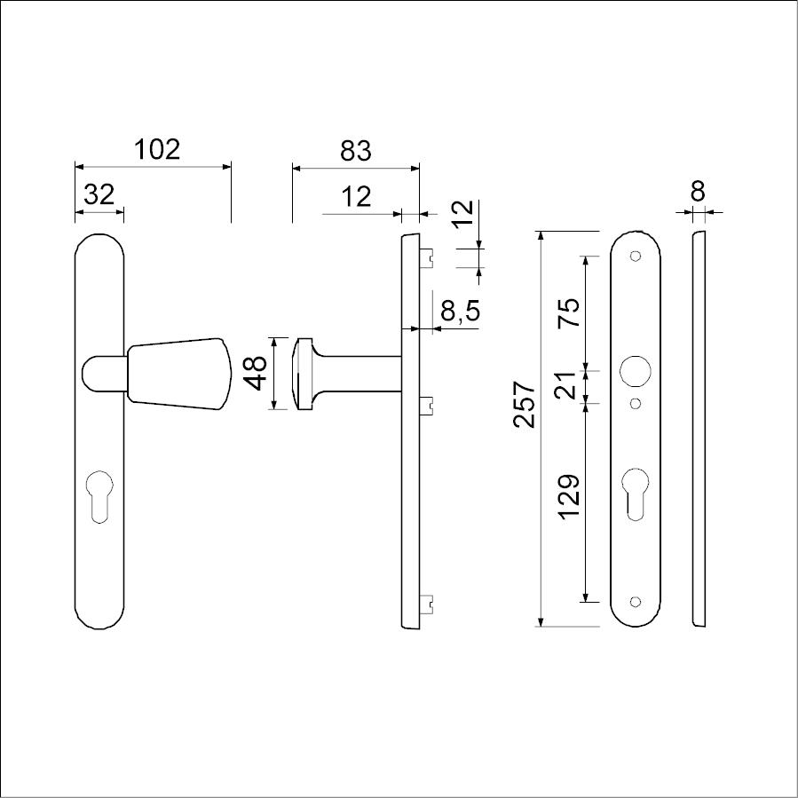 Buitenschild 12 mm met knop 166 vastbinnenschild 8 mm,