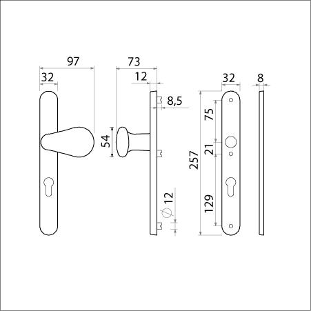 Buitenschild 12 mm met knop 173 Varo binnenschild 8 mm,