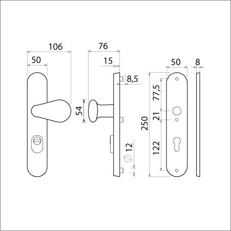 binnenschild 8 mm met deurkruk 378 ROTA verend vastdraaibaar,