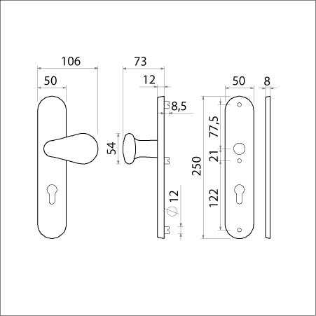 binnenschild 8 mm met deurkruk 378 ROTA verend vastdraaibaar,