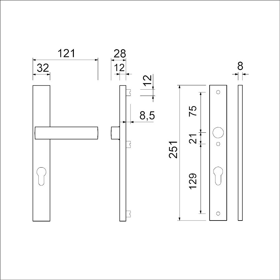 Buitenschild 12 mm met deurkruk 353 vastdraaibaar,