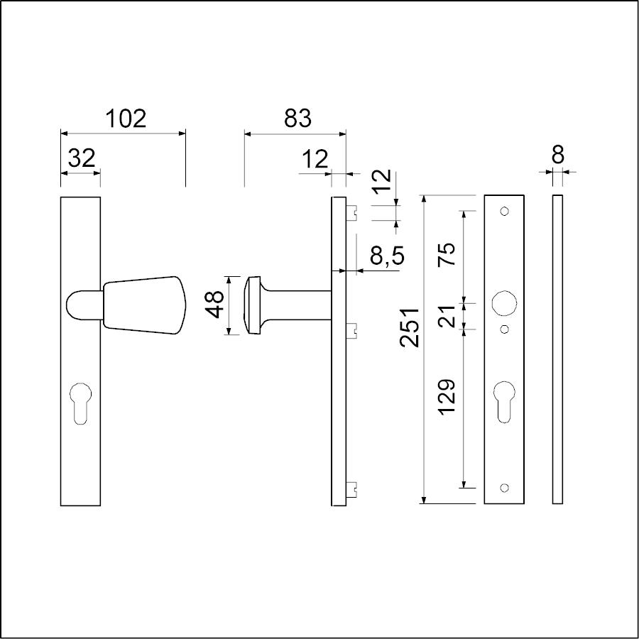 Buitenschild 12 mm met knop 166 vast binnenschild 8 mm,