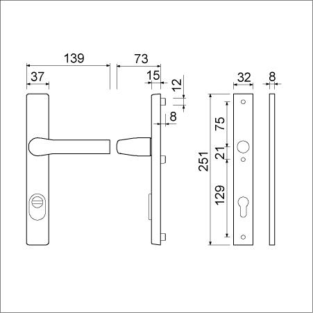 Buitenschild 15 mm dik 37 mm breed met deurkruk 379 ROTA verend vastdraaibaar,