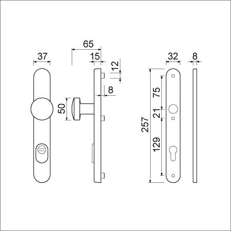 binnenschild 8 mm dik en 32 mm breed met deurkruk 378 ROTA verend vastdraaibaar,